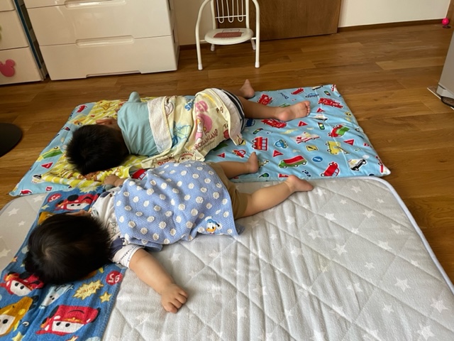 昨日は午前中息子達と家の周りの田んぼをぐるっとお散歩! 関東と違ってめちゃくちゃすごしやすい田舎! 汗はかくので、お菓子と麦茶を持ってレッツゴー!!! パパとお茶タイムして お花摘んで ちょうちょ追いかけて 虫見つけて 棒でつっついて お茶飲んで 次男のお昼寝ちょっかいだして 暑かったのか家へ帰り 食べたかったラーメンを食べ パパとプールをし 大満足でお昼寝した子たち 同じ格好で寝る兄弟 米の農薬は平日に撒いて欲しい。。。切実 3歳3ヶ月 8ヶ月 お散歩 兄弟