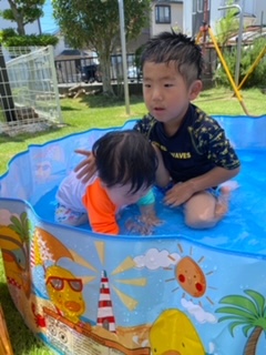 長男はまたプールで遊んで